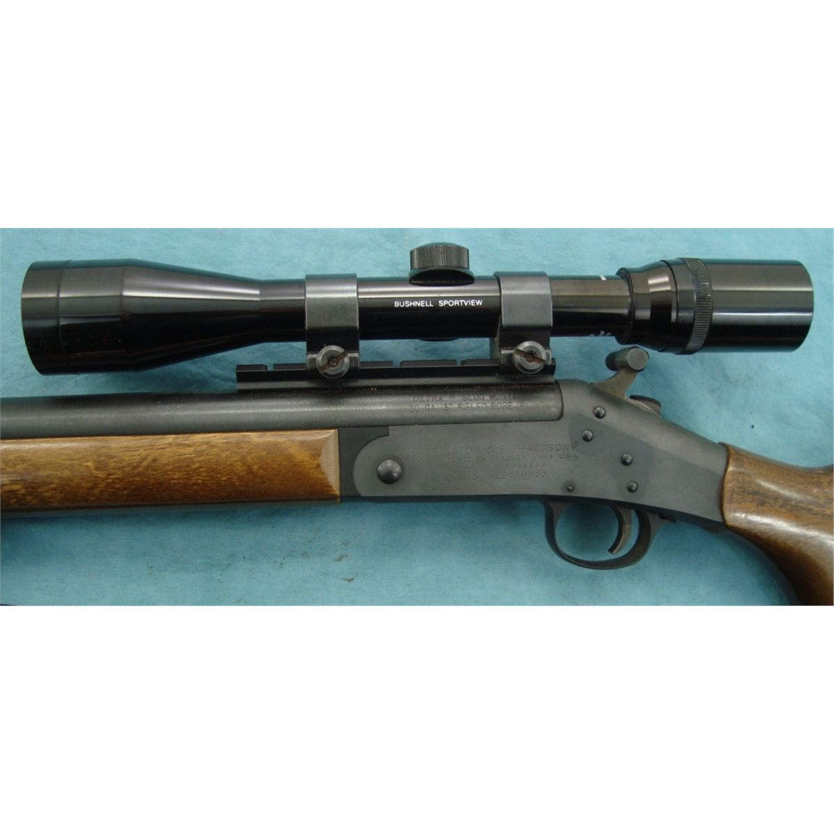 #HL270565; 20 ga. w/3" rifled bore & heavy 24" bbl. Fitted w/Bushnell scope. In very good condition