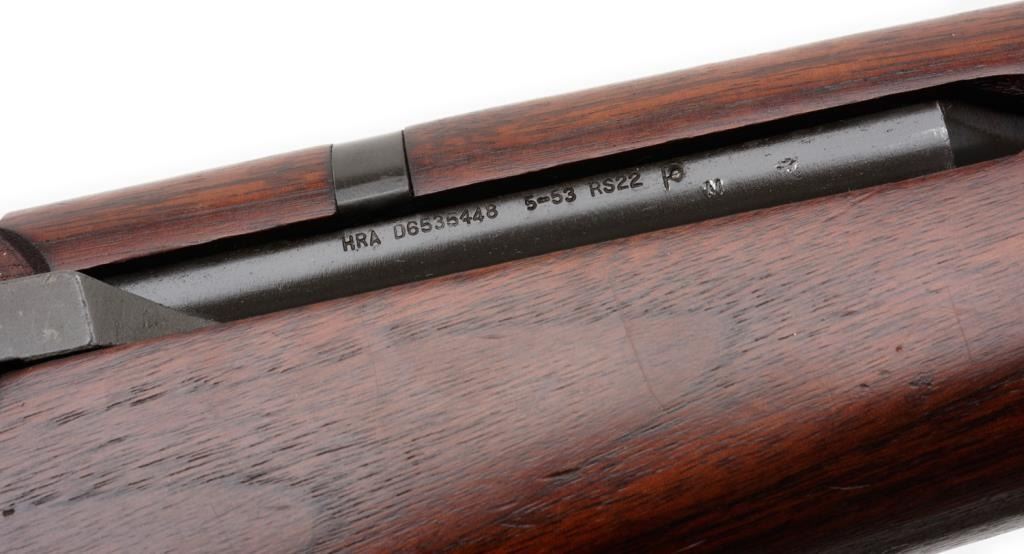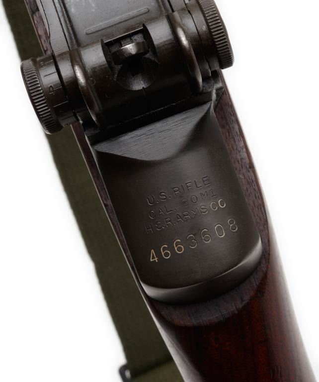 H&R M-1 Garand in .30-06 caliber, SN: 4663608. The H&R barrel is dated 5-53. War eagle and P proofs in the stock. In very good plus overall condition with a few dings in the wood. Great bore. Est.: $1400-$2800