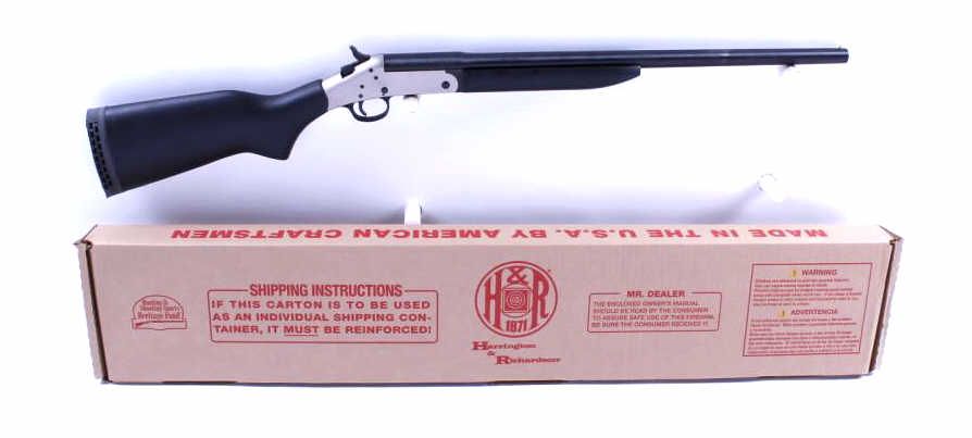 Single Shot break action shotgun chambered in 20 gauge, blued 22" barrel with matte nickel receiver, black synthetic stock and forend, excellent bore and action. Includes original box. Condition: Excellent