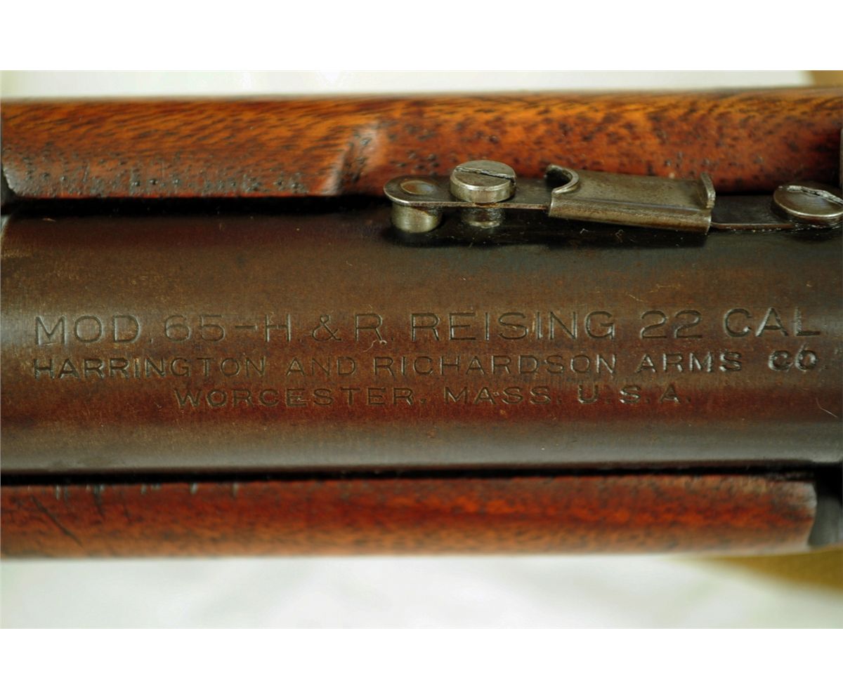 H and R Model 65A Reising, Military Training Rifle, 22 Cal. Long Rifle,Semi Automatic with Redfield peep site, Mfg. 1944-1946, Rifle is in good condition. See photos for more information. Gun is believed to be but not guaranteed to be in shooting order. Kennedys Auction Service has not attempted to test fire any gun in this auction and all guns are sold "IN AS IS CONDITION" and are not guaranteed to be operational.