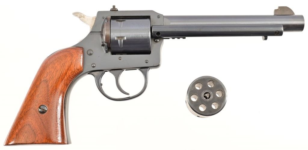 5.5" barrel, blued finish, wood grips, comes with .22 Mag spare cylinder. S/N AP67612