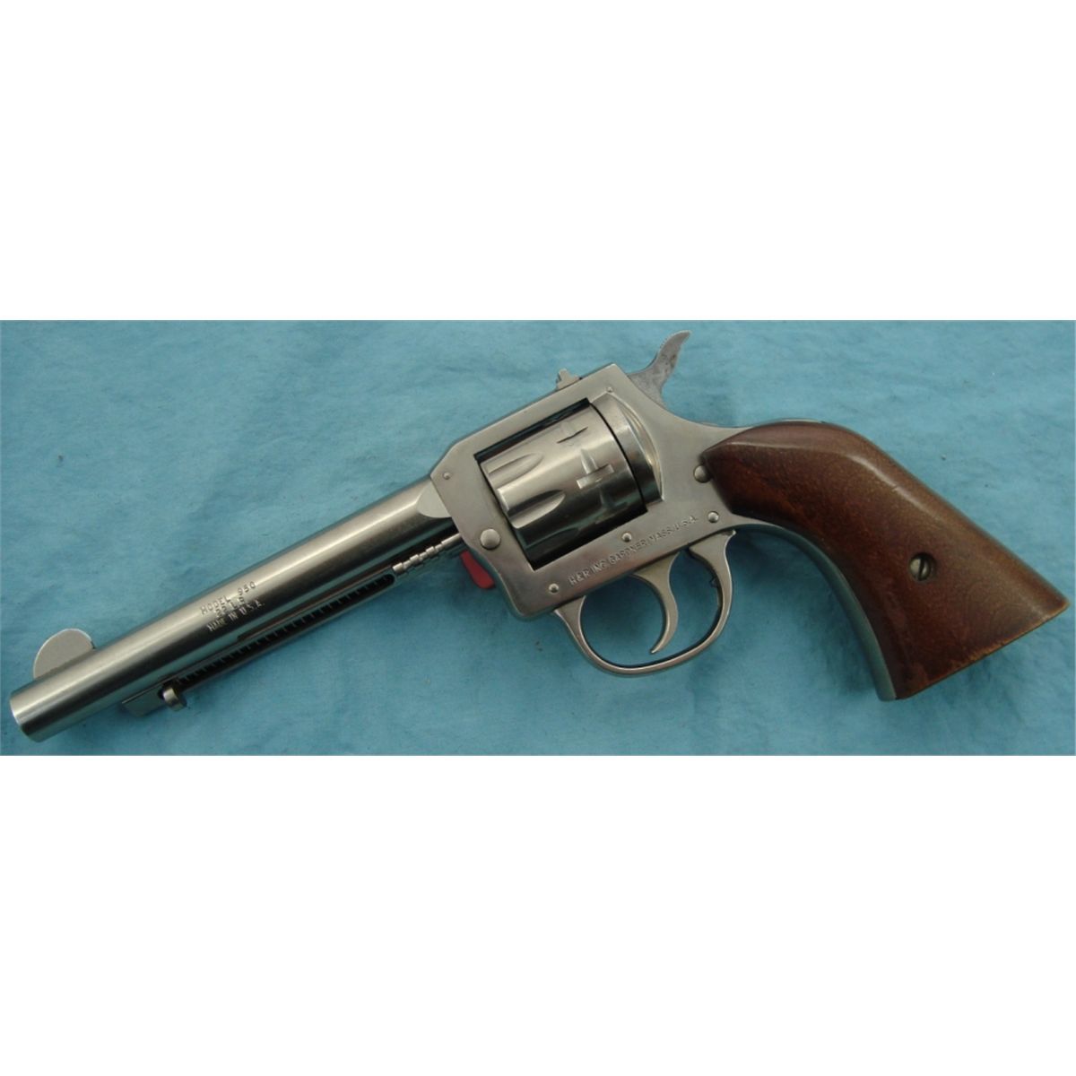 #AUO64314; 22 LR w/5 1/2" bbl. SS finish & walnut grips. Complete w/leather holster in very nice lightly used condition.