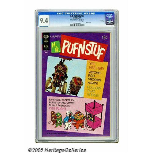 <B>H.R. Pufnstuf #3 File Copy (Gold Key, 1971) CGC NM 9.4 Off-white to white pages.</B></I> Photo cover. Overstreet 2005 NM- 9.2 value = $155. CGC census 7/05: 2 in 9.4, 1 higher. <I>From the Random House Archives.</B></I> <BR><BR><B>Important notice:</B> Heritage usually auctions material at the rate of 200-250 lots per hour. On some occasions eBay Live bid software or the Internet may not be able to keep up with the pace of the auction. We recommend placing a realistic absentee bid now as insurance to avoid disappointment. Occasionally the auctioneer may eliminate or reject an eBay Live bid, and the auctioneer may also reopen a lot after the close of the eBay live bidding (usually because we missed an audience bid), and may reject your bid even if it shows you as the winning bidder. By bidding via eBay Live, you agree that Heritage may award the lot to another bidder at its sole discretion under the circumstances described above or any other reasonable circumstances. Since eBay bids are not shown to us until we open the lot on the floor, we treat those bids just like floor bids. In most cases the floor responds before the eBay bid is presented to us, due to Internet lag time, so for consistency we have made it a policy that floor bids are always considered first over tie eBay live bids. Also please note that all Heritage lots purchased through eBay Live carry a 20% Buyer's Premium. Please make sure you read the Terms and Conditions before you bid. This lot is being auctioned in conjunction with a live floor auction by Heritage Galleries & Auctioneers. All final auction and invoice information will be supplied by Heritage Galleries & Auctioneers, and all other information should be considered preliminary. Lot:3182 <BR><BR><B>Winning Notification and Billing:</B> After the FINAL session in this auction is complete, Heritage will send e-mail and snail mail invoices. This process normally takes several days. All final auction and invoice information will be supplied b