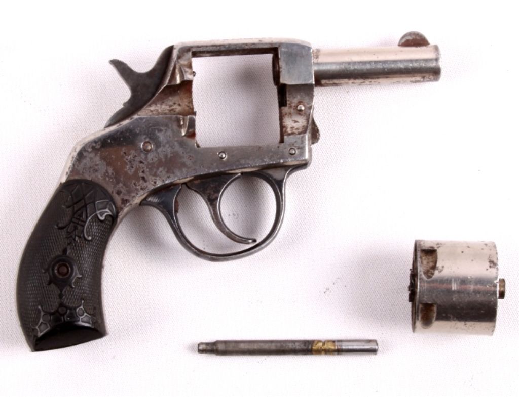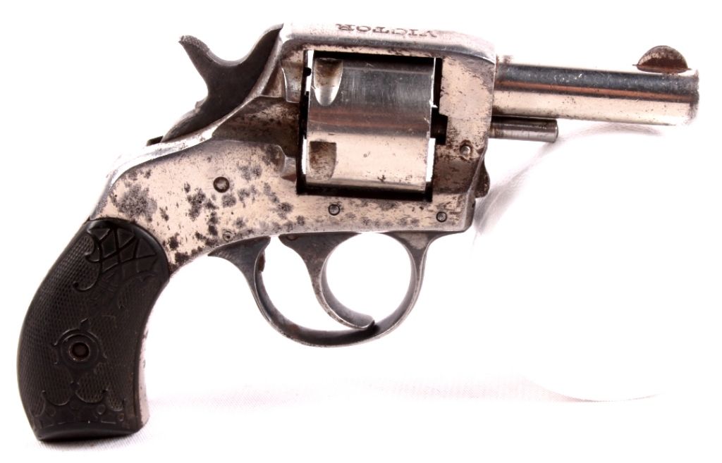 This is a Harrington & Richardson Victor .32 S&W cal. 6 shot double action revolver. This has the original unique bakelite grips and is in working condition. This gun was made after 1915