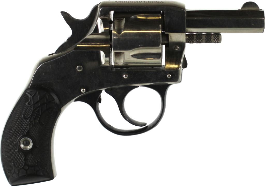 H&R Young America .32 cal. NVSN, 5 shot revolver, nickel finish with 1 1/2" octagon barrel, hard rubber grips showing good original finish, fine overall condition. Modern. Est.125-175