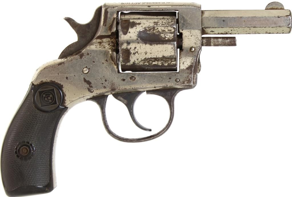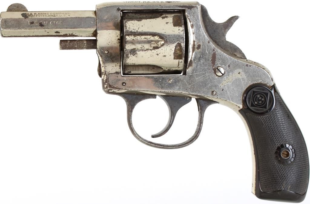 revolver 2 1/2" octagon barrel, nickel finish with black hard rubber grips. Works on double action, good bore. Modern. Est. 150-250