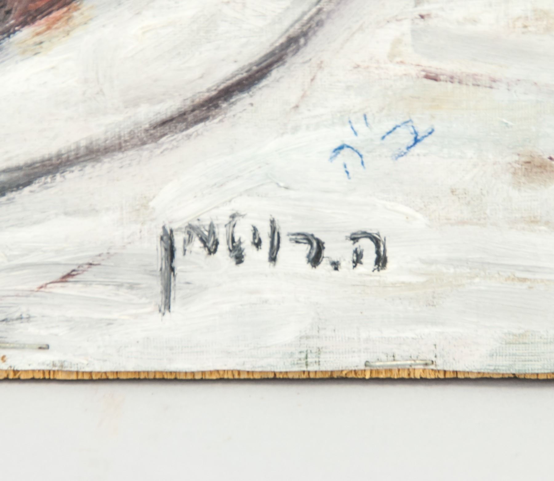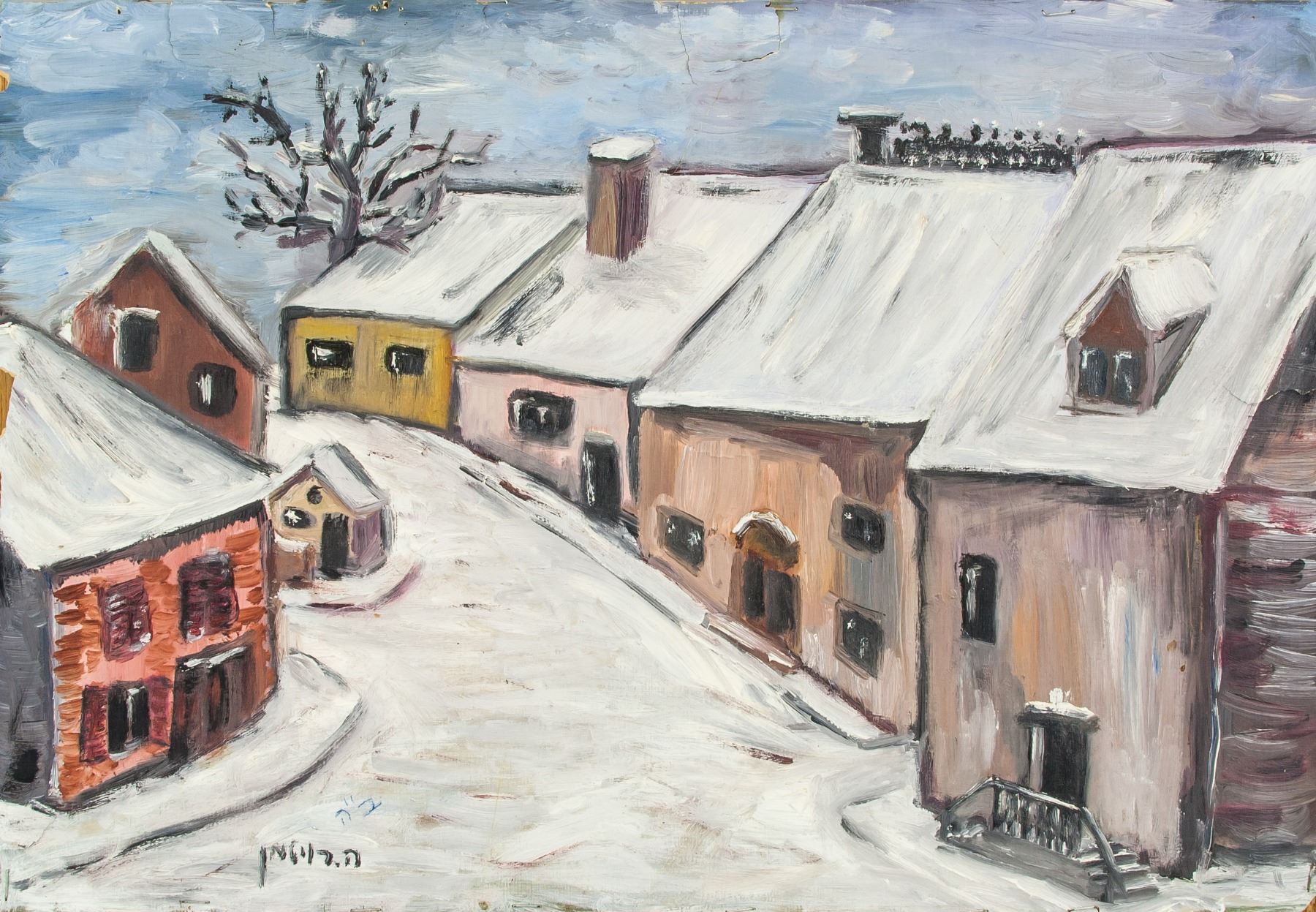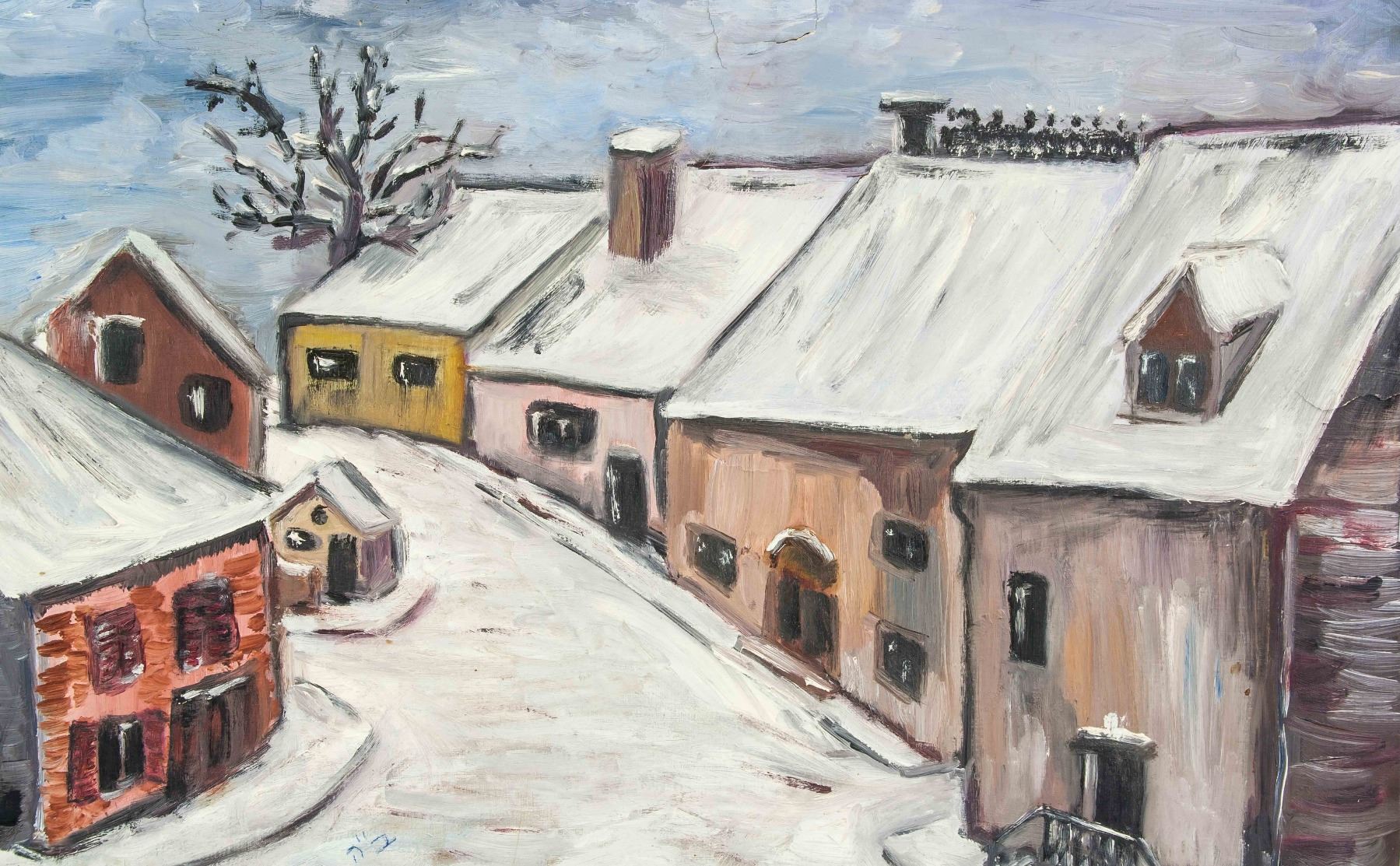 Oil on canvas, houses. Signed by artist lower left corner. Verso "H. Roytman" written on upper right corner. 13 x 20 inch (34 x 52 cm).
