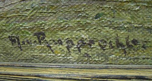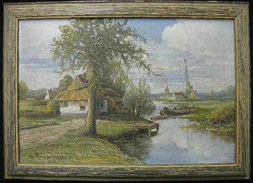 H. Rupprecht oil on canvas of Netherlands landscape; listed 20th C. European artist; signed (L. L.); framed; image measures 7 1/2" x 11 1/2" (some overall crazing)