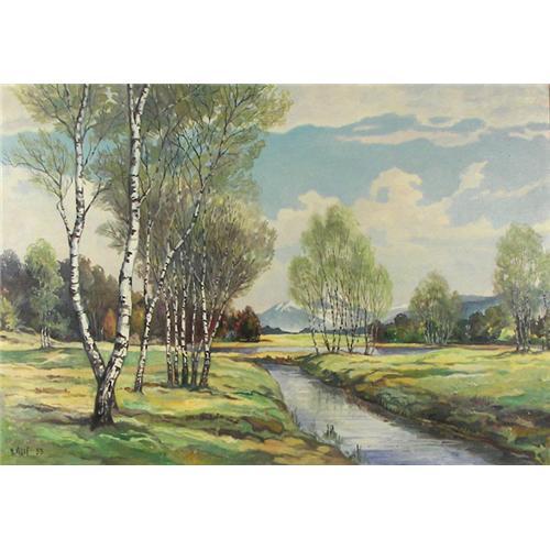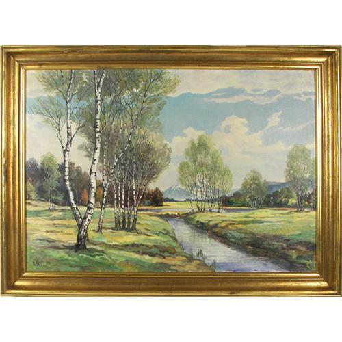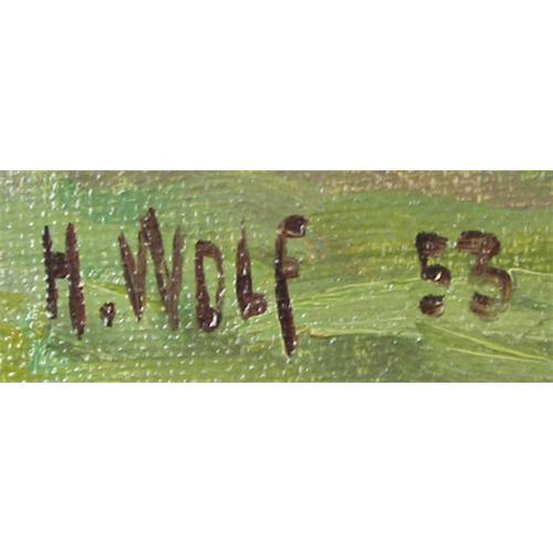 H. Wolf, Oil on Canvas, Landscape, 1953, 19 3/4" x 28 3/8", signed lower left