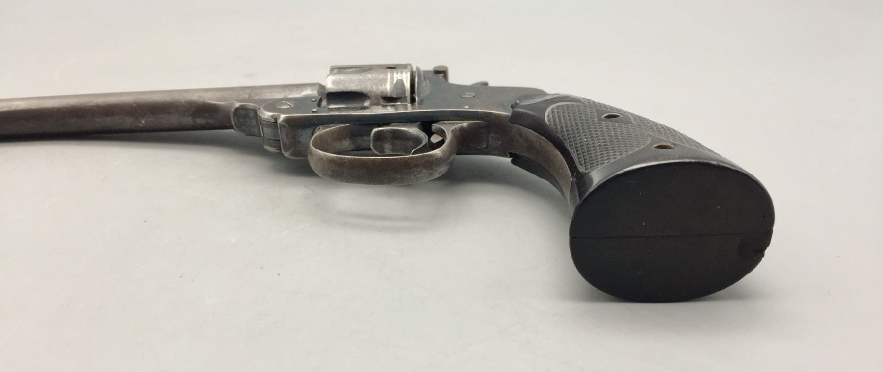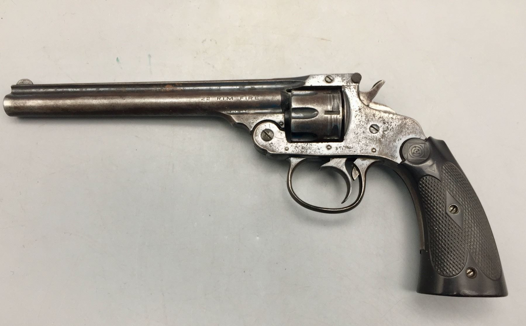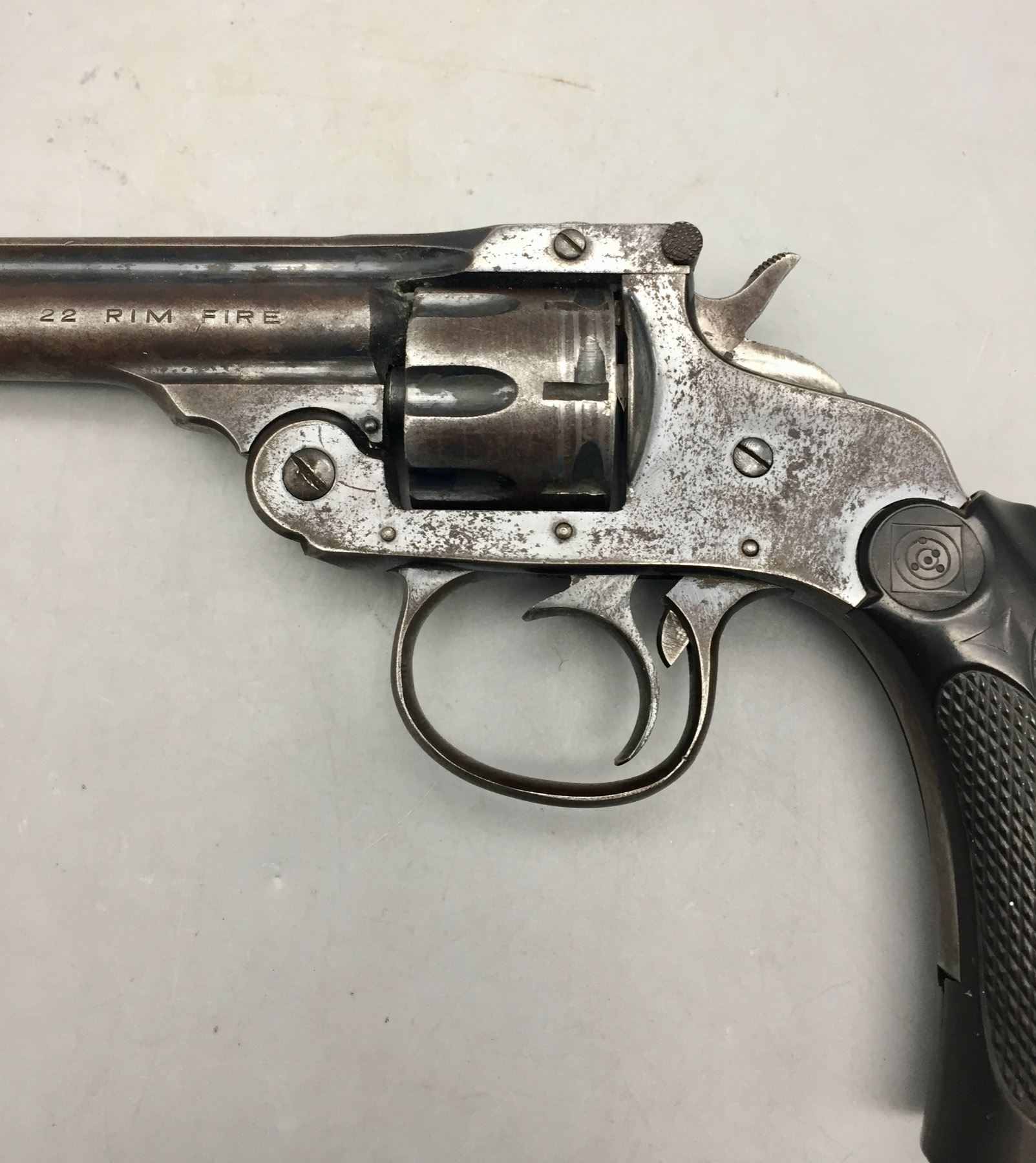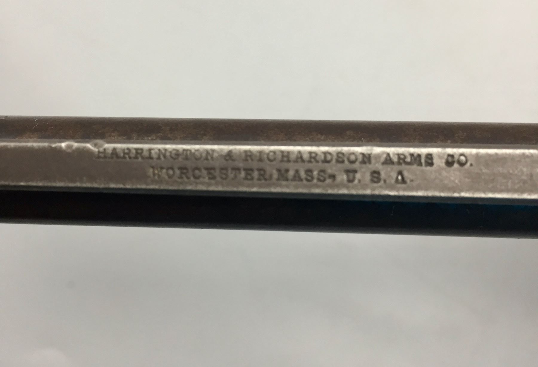 Description: Presented for sale in this lot is an H and R Arms Co. .22 caliber rim fire revolver with rubber grips. Does not always cycle properly. May have a week spring. Maker: Harrington and Richardson Arms, Co. Approx. Age: Early 1900s. Size: Barrel measures 6†with an overall length of 11â€. Condition: Fair for its age, wear expected. Please note that there is a broken piece on the grips. Please look closely at the pictures - they are an important part of our description. Shipping: There will be a $15 handling / packaging fee for shipping this lot. The actual cost of postage will be added on top of that. *****This firearm REQUIRES an FFL Transfer*****