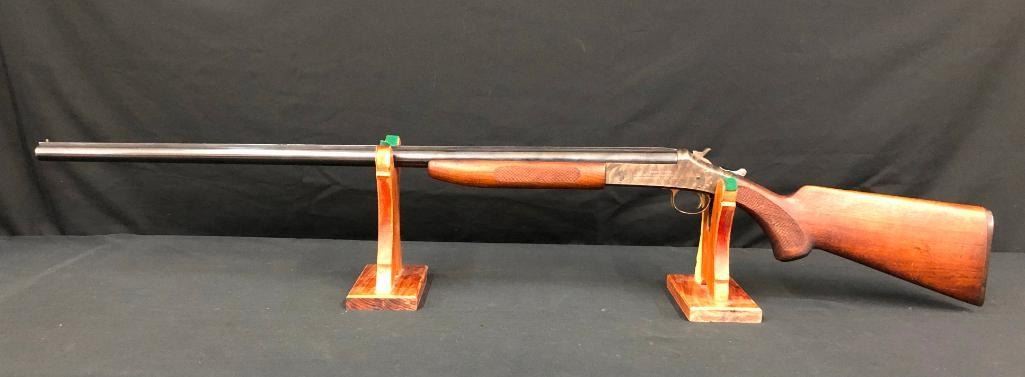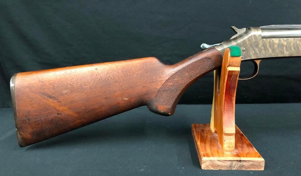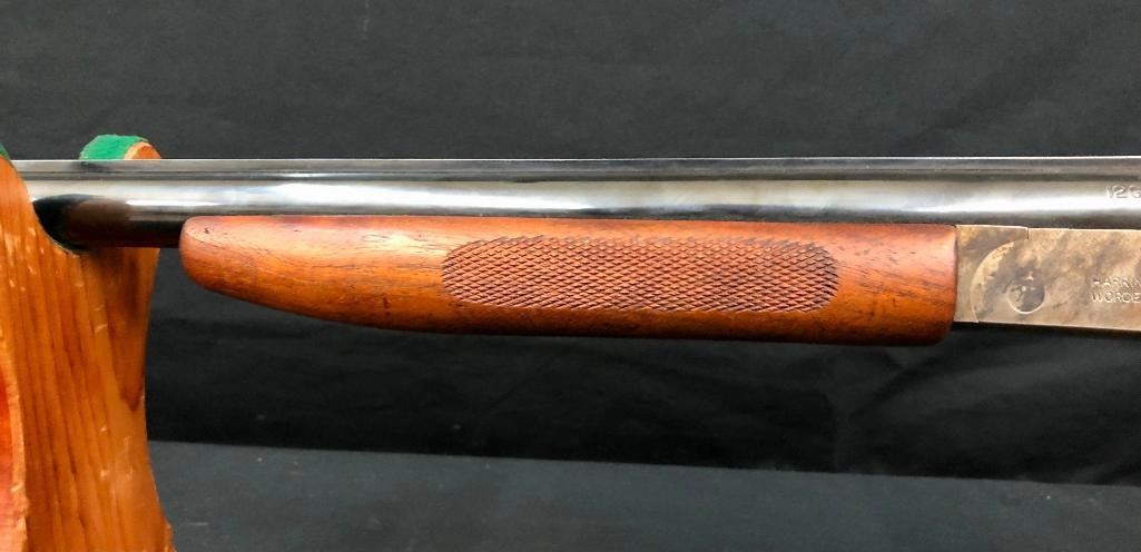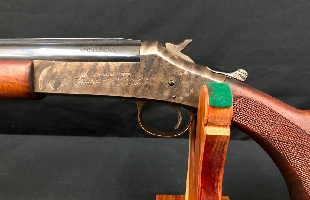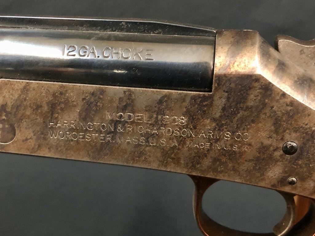 Offered for your consideration is this H and R Model 1908 12 gauge shotgun with checkered wood stocks, blued barrel and case hardened frame. This one is in very good condition for its age, showing some patina from aging but only moderate use. It has a 30" barrel with single bead front sight. Maker: H and R. Serial No. 453965. Approx. Age: Fairly Modern. Size: Barrel measures 30 inches. Condition: Good for its age, normal wear expected. Please look closely at the pictures - they are an important part of our description. Shipping: There will be a $25 handling / packaging fee for shipping this lot. The actual cost of postage will be added on top of that. BUY IT NOW: If you would like to buy this item now without waiting for the auction to end (this option is only available up to 48 hours before the auction starts to close), the “Buy it Now” price is the high estimate of this lot. If you would like to end the auction early and pay the high estimate (plus applicable fees), please contact us by phone or email and reference this lot number. *****This firearm requires an FFL Transfer*****