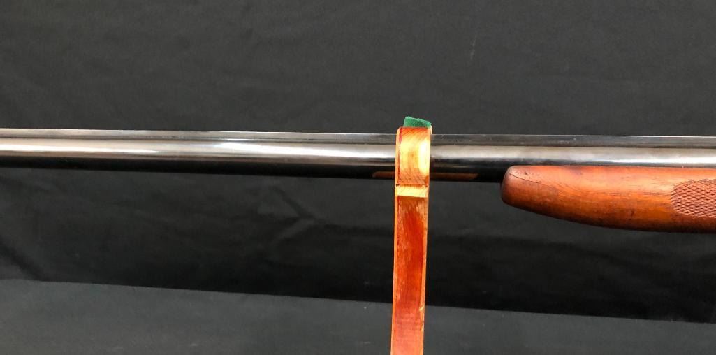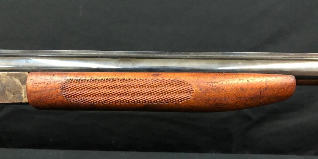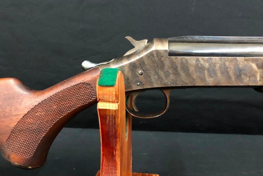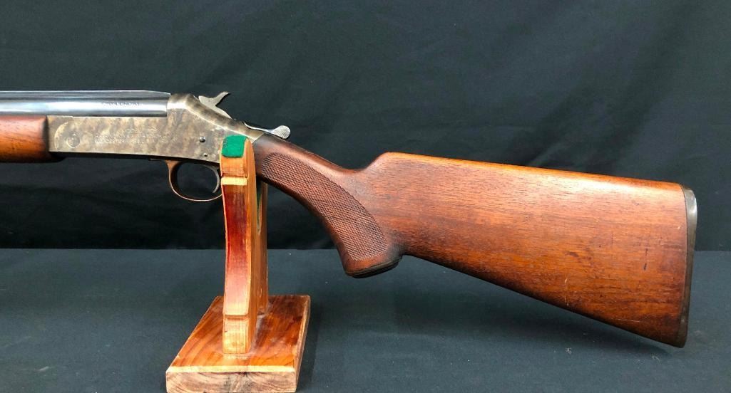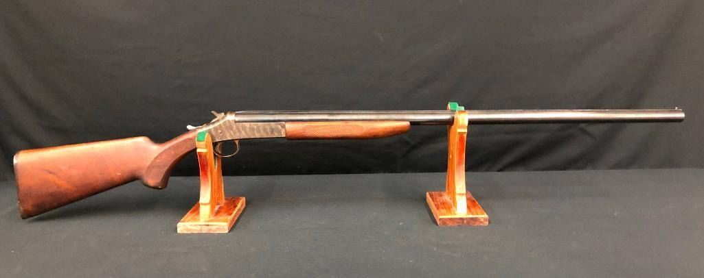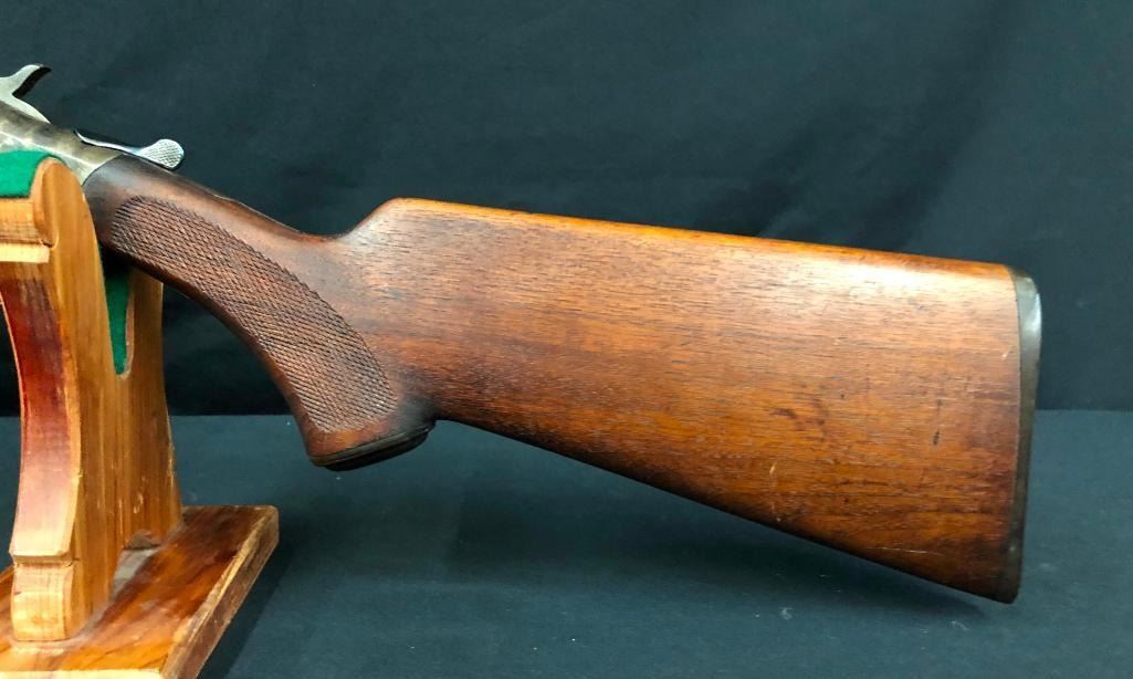 Offered for your consideration is this H and R Model 1908 12 gauge shotgun with checkered wood stocks, blued barrel and case hardened frame. This one is in very good condition for its age, showing some patina from aging but only moderate use. It has a 30" barrel with single bead front sight. Maker: H and R. Serial No. 453965. Approx. Age: Fairly Modern. Size: Barrel measures 30 inches. Condition: Good for its age, normal wear expected. Please look closely at the pictures - they are an important part of our description. Shipping: There will be a $25 handling / packaging fee for shipping this lot. The actual cost of postage will be added on top of that. BUY IT NOW: If you would like to buy this item now without waiting for the auction to end (this option is only available up to 48 hours before the auction starts to close), the “Buy it Now” price is the high estimate of this lot. If you would like to end the auction early and pay the high estimate (plus applicable fees), please contact us by phone or email and reference this lot number. *****This firearm requires an FFL Transfer*****