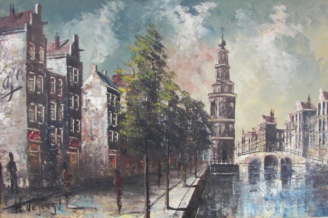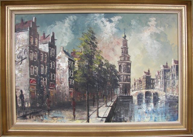 H. de Jongl, Oil , (8230) H. De Jongl, Oil On Canvas "wester Toren Amsterdam", Landscape, 23 1/2" X 35 1/2", Signed Lower Left