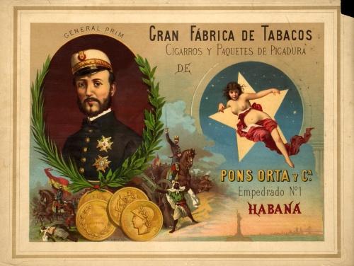 HABANA. FABRICA DE TABACOS PONS ORTA. (1895 CA.). 57x44cm. (22,5x17,5in.). Litografía. B+. Falta de papel en la esquina superior derecha.