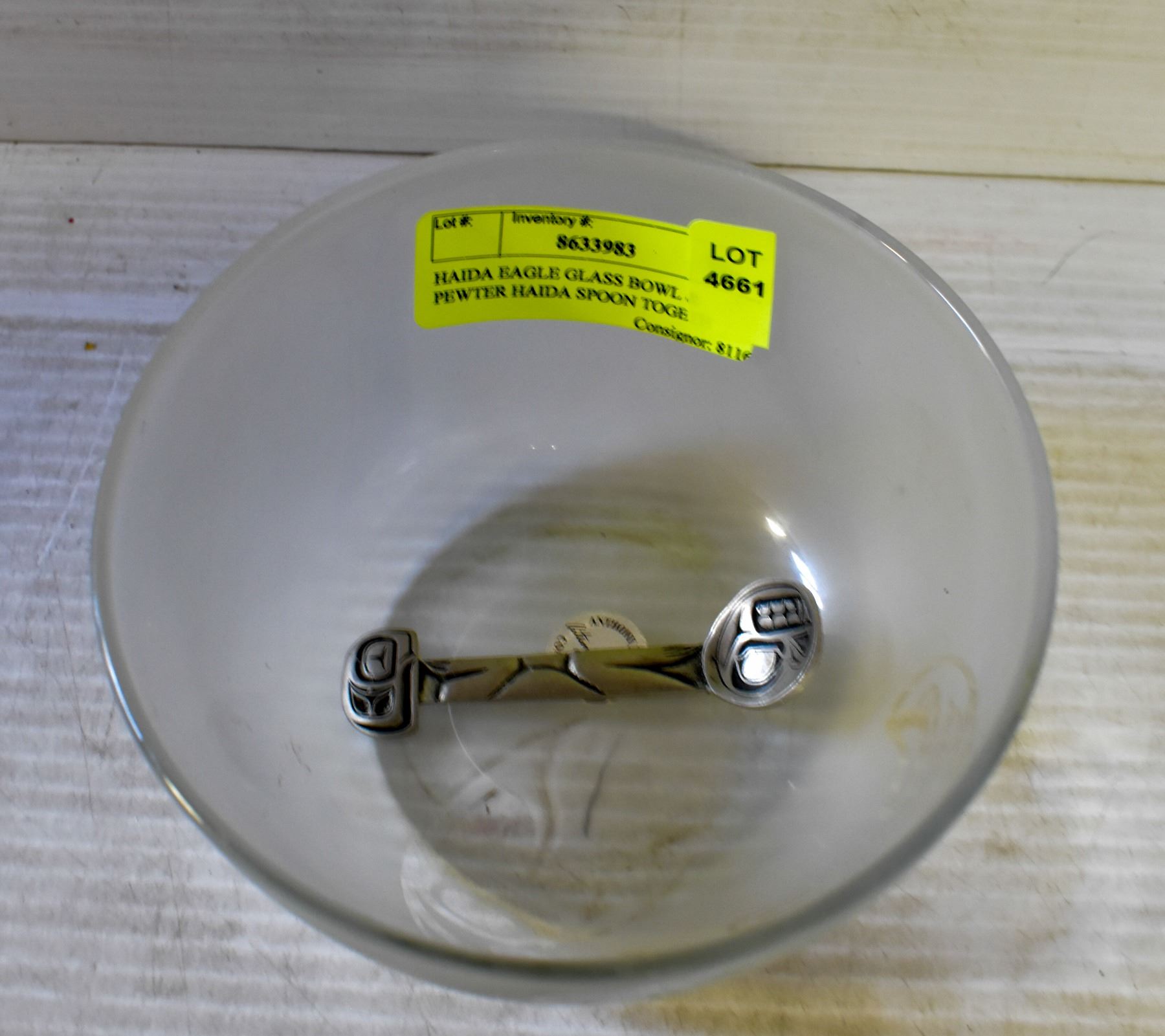 HAIDA EAGLE GLASS BOWL & PEWTER HAIDA SPOON TOGETH