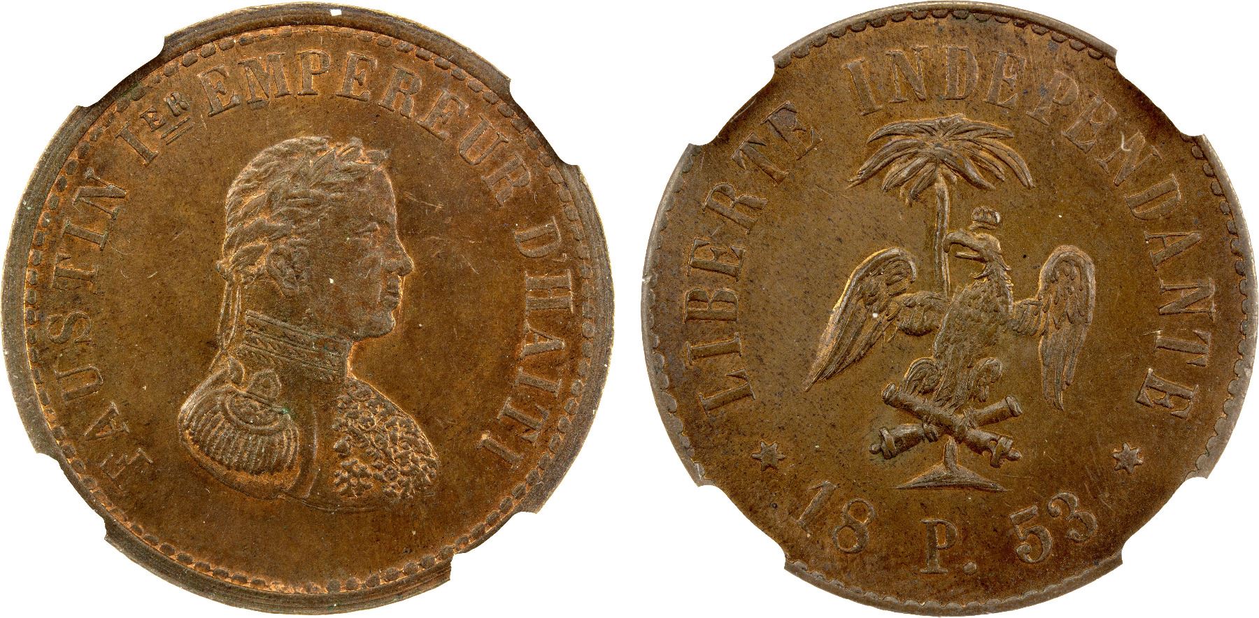 HAITI: Faustin I, 1849-1859, AE 10 centimes, 1853, NGC MS63 BN