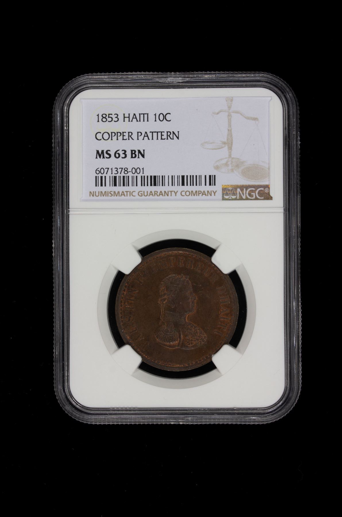 HAITI: Faustin I, 1849-1859, AE 10 centimes, 1853, KM-Pn51, pattern strike (essai) from Paris Mint, NGC graded MS63 BN, ex Louis Baptiste DuPont Collection.