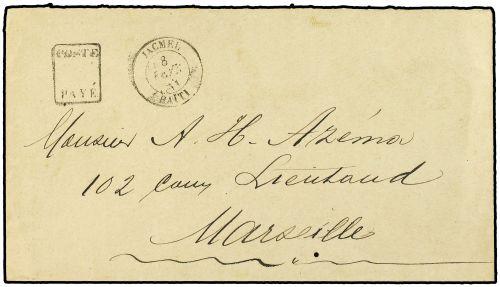 (2) 1898 JACMEL a MARSELLA. 2 sobres circulados con el fechador JACMEL/HAITI y POSTE/PAYÉ indicando el pago en origen.