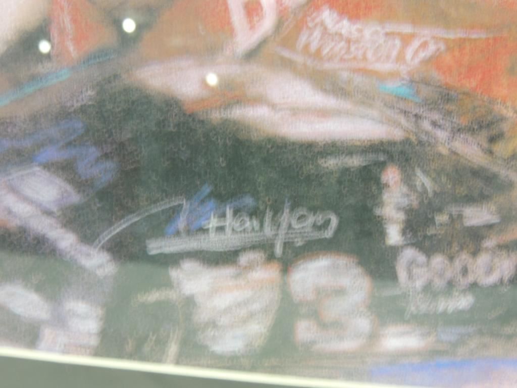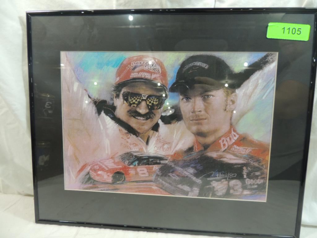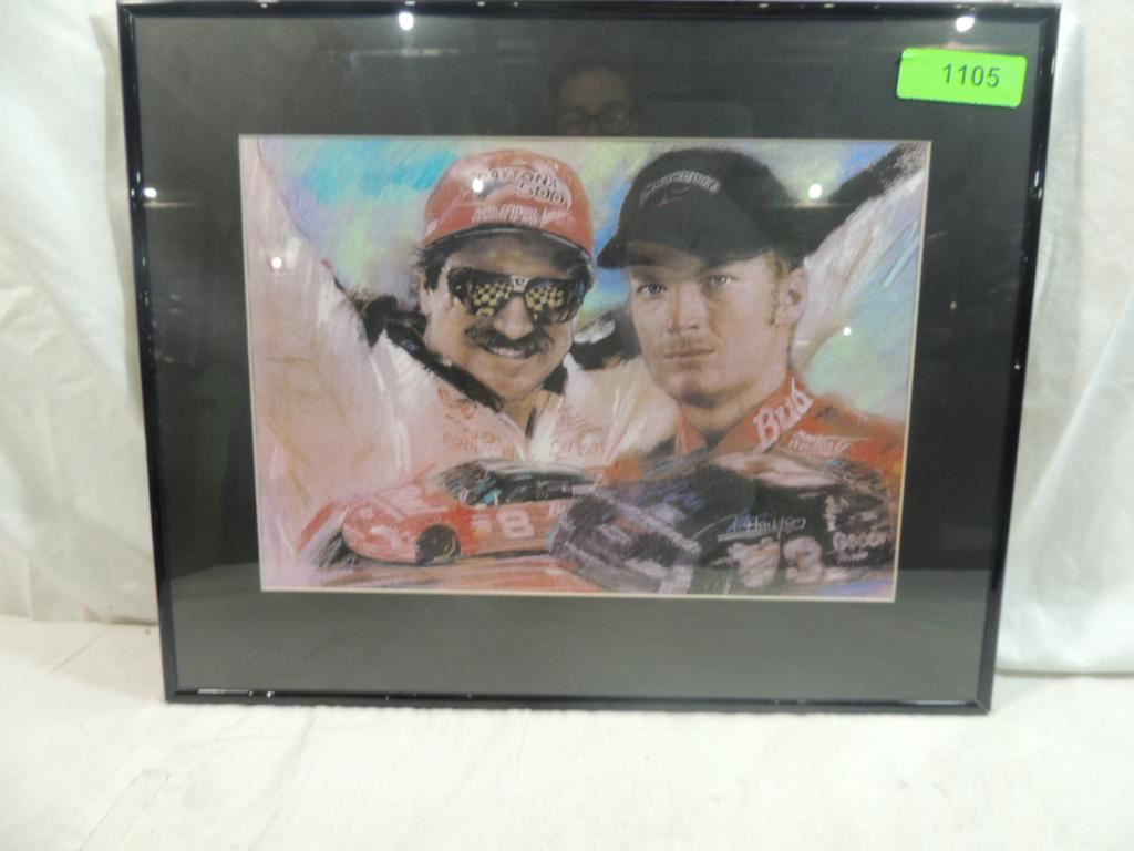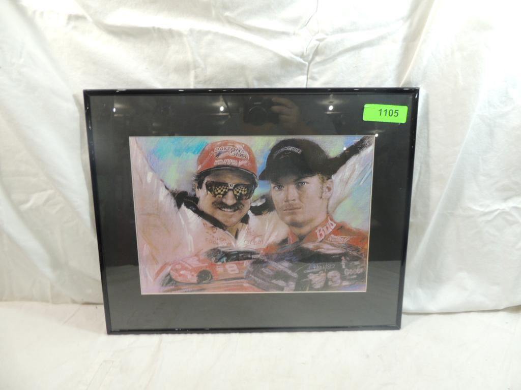 16X20 FRAMED MATTED DRAWING, ARTIST SIGNED DRAWING DALE EARNHARDT & DALE EARNHARDT JR. COLLECTORS DRAWING, MEMORABILIA, AS SHOWN SEE PHOTO FOR MORE DETAILS.