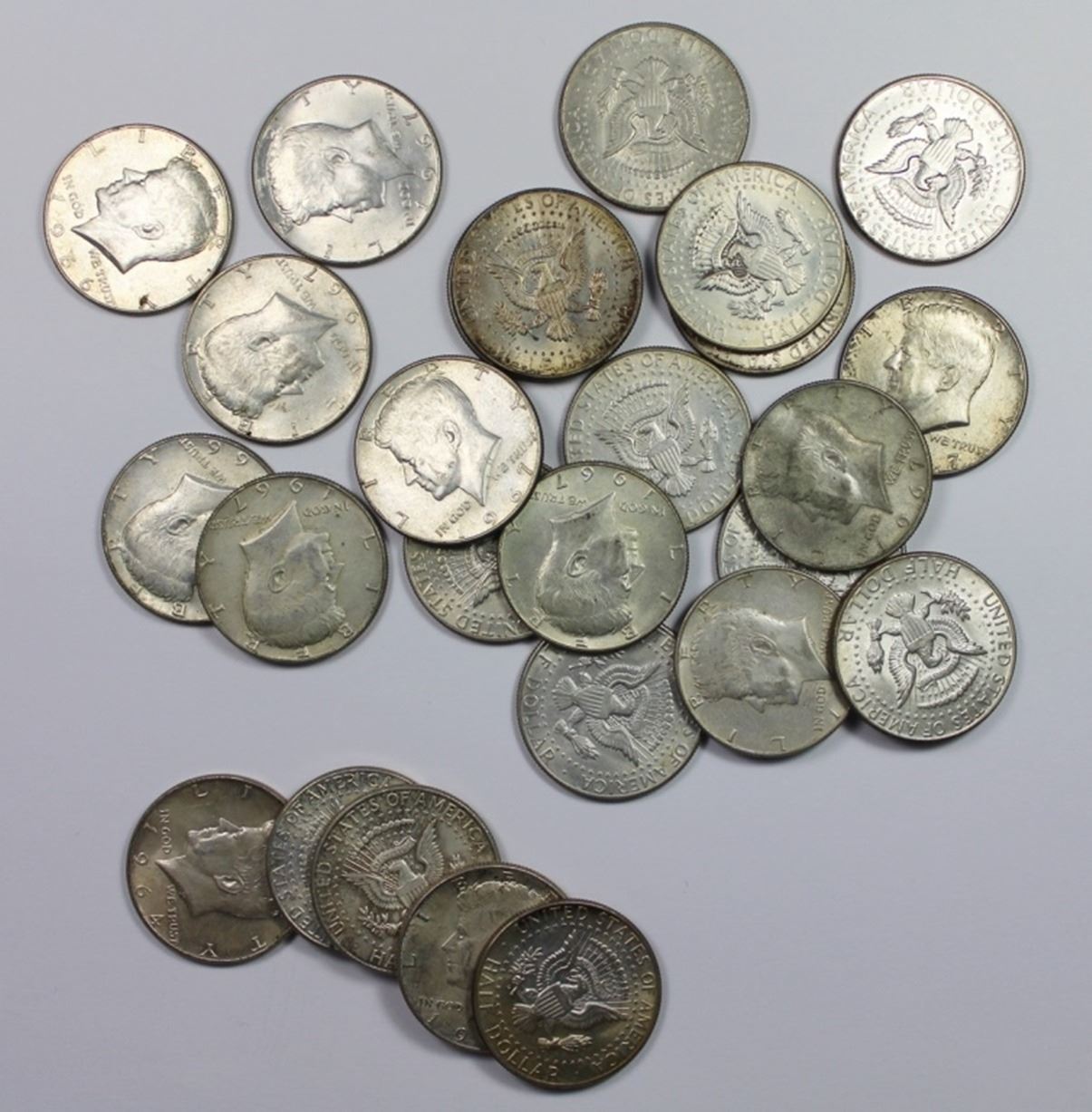 FIVE 1964 SILVER AND 21 1965-1969 SILVER. ESTIMATE: $150-$175