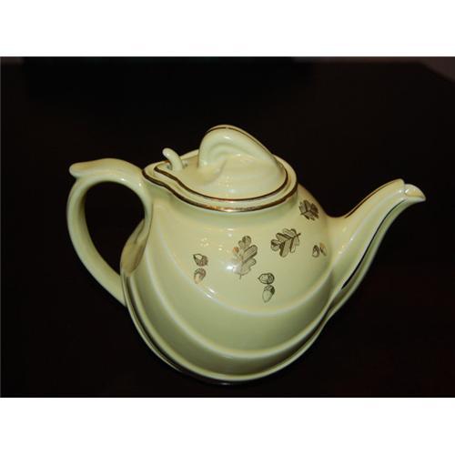 Hall China Parade Style Teapot. Has gold oak leaf and acorns decorations and gold trim. Slight wear to the gold trim . Marked Hall