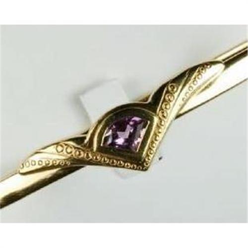 This Vintage Bracelet from my collection is 9K YELLOW GOLD and it features a 'wing shaped' inset that is accented by a 'fan shaped' AMETHYST. This Classic Gold Bangle Bracelet has a Maker's Mark, is HALLMARKED, and it can fit a wrist size from 7" to 8" . This Amethyst Bangle Bracelet is in Excellent condition.