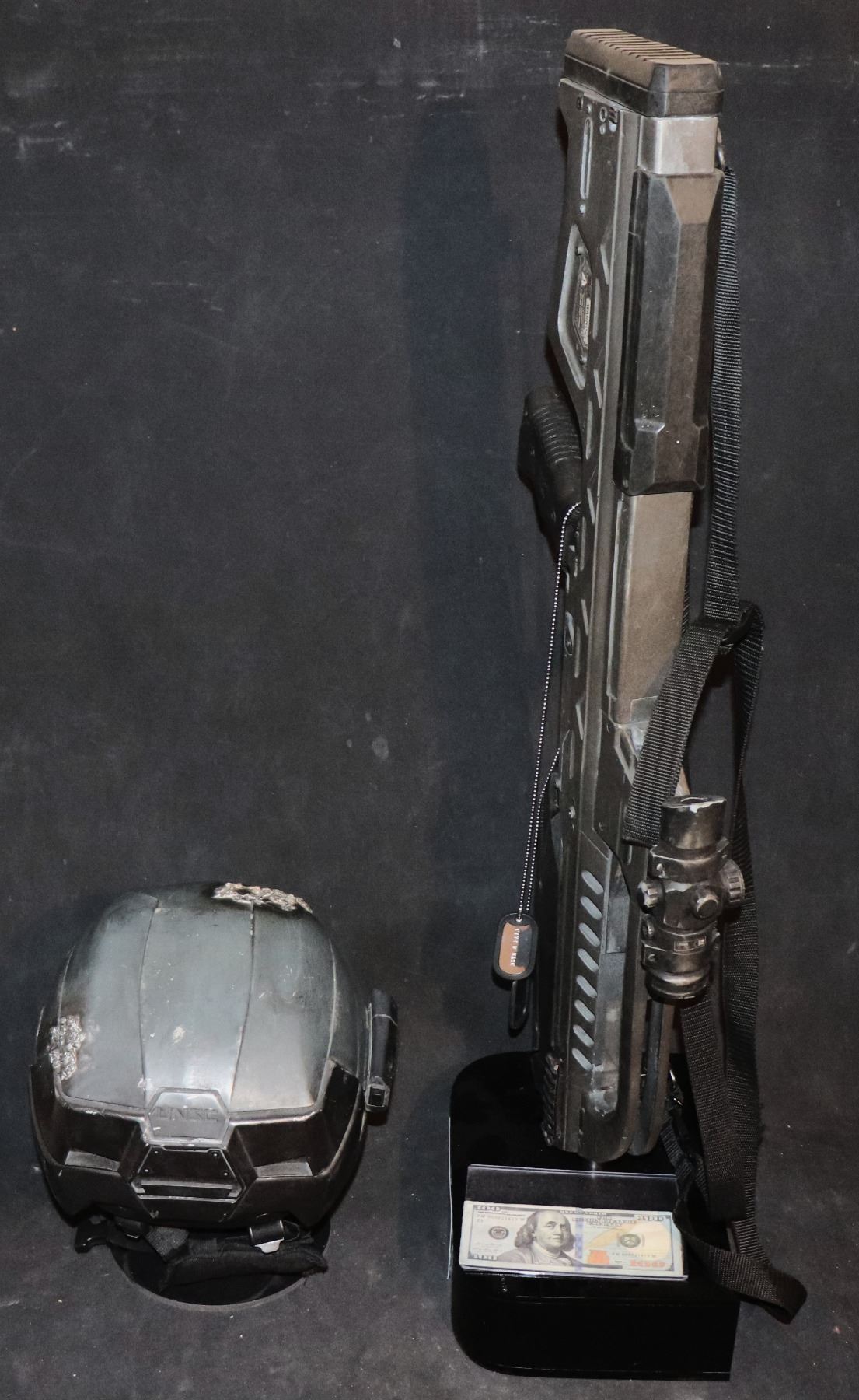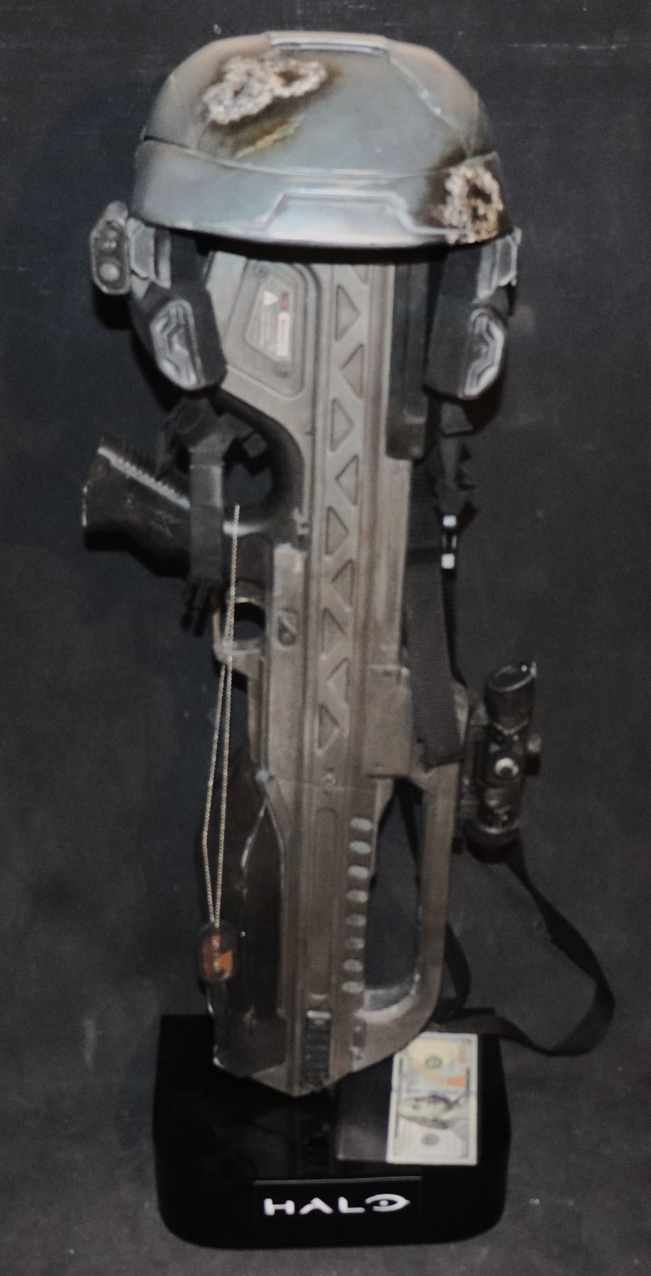 HALO HELMET PULSE RIFLE AND DOG TAGS SCREEN USED DISPLAY!