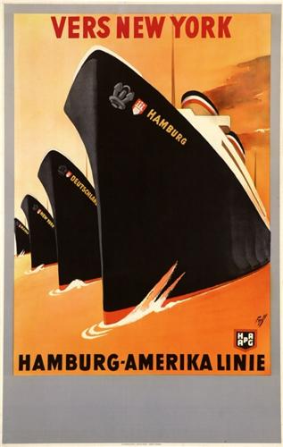 HAMBURG-AMERIKA LINIE. (1920 CA.). 100x64,5cm. (39,4x25,8in.). Litografía. A-. Entelado.