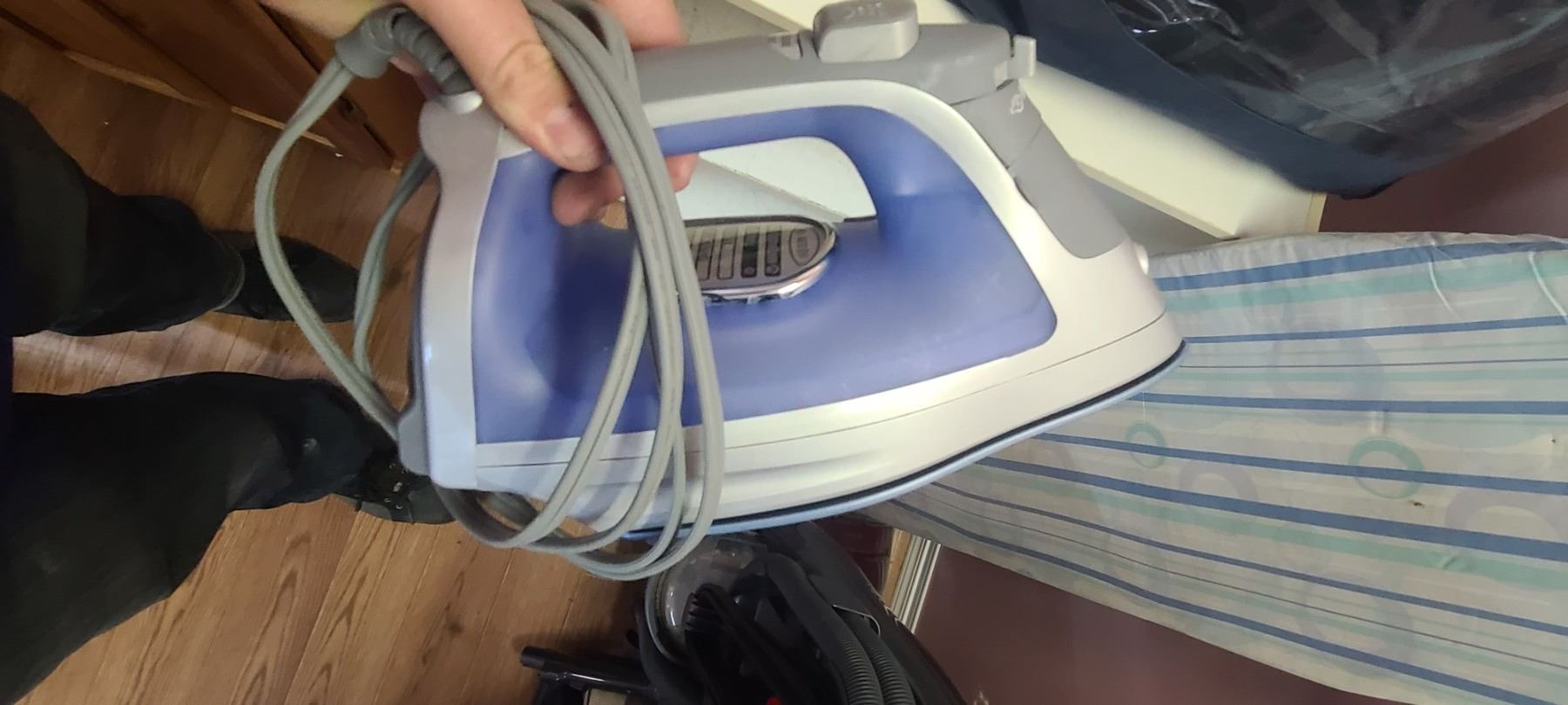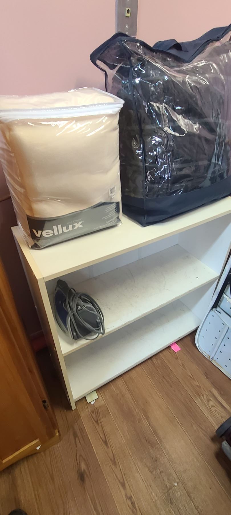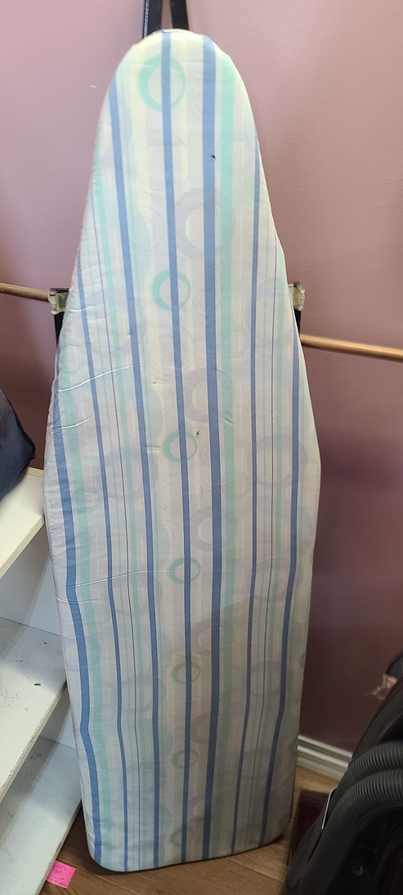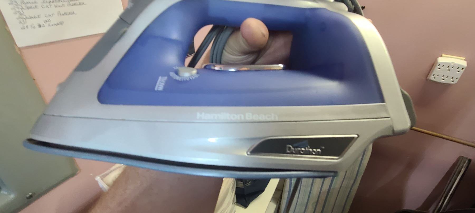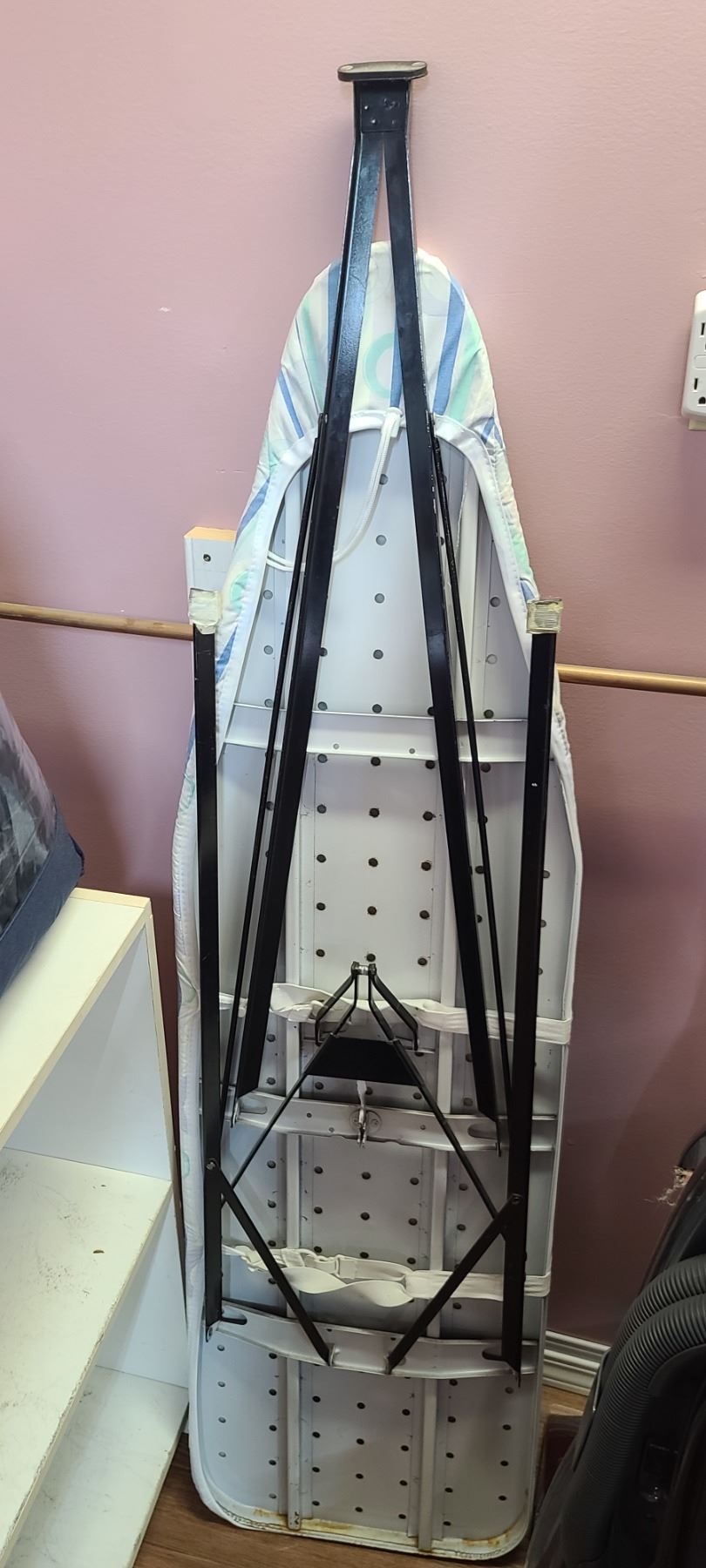 HAMILTON BEACH IRON, IRONING BOARD, SHELVING UNIT
