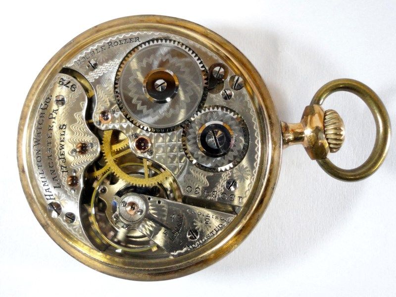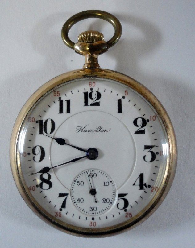 HAMILTON OPEN FACE POCKET WATCH, RAIL ROAD GRADE, RUNS!