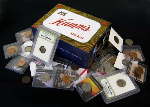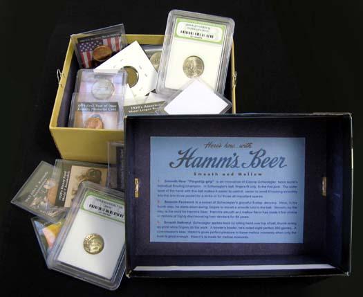 HAMM'S BEER OLD STYLE BOX WITH OLD COIN COLLECTION