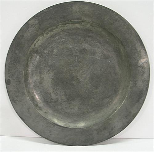 PERIOD HAMMERED PEWTER CHARGER. Marked on back “SCC”. 15” Dia.