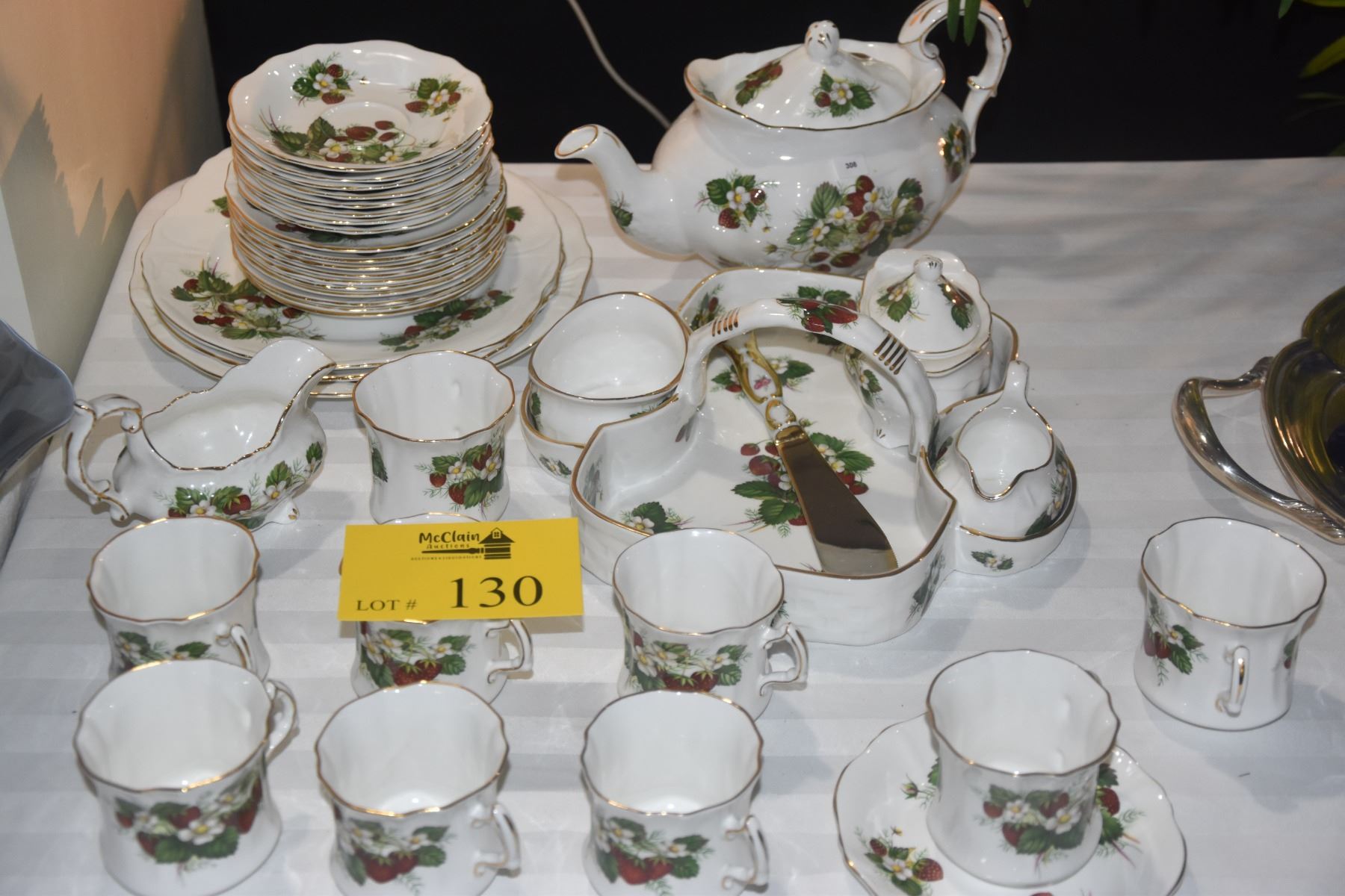 HAMMERSLEY & CO. BONE CHINA, "STRAWBERRY RIPE" TEA SET, CUPS & SAUCERS, PLATES, KNIFE & BASKET (38 PCS)