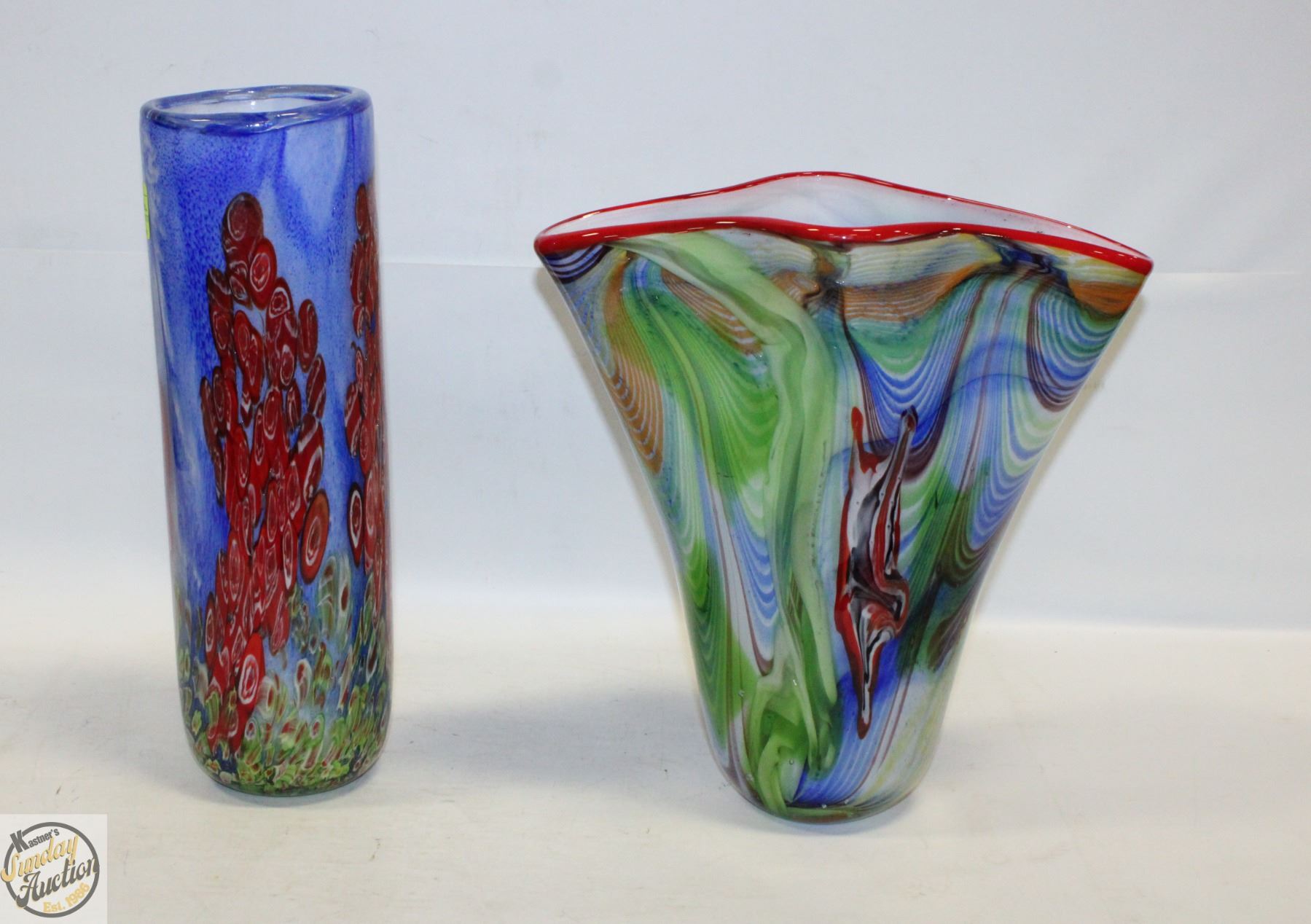 HAND BLOWN GLASS VASES SET OF 2