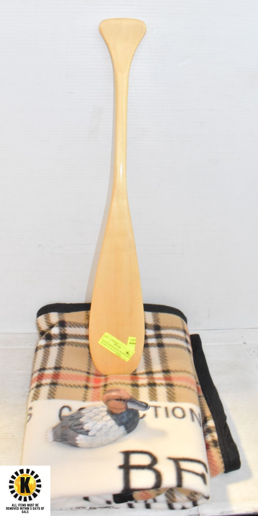 HAND CARVED DUCK, BEAR FLEECE BLANKET& DECOR PADDL