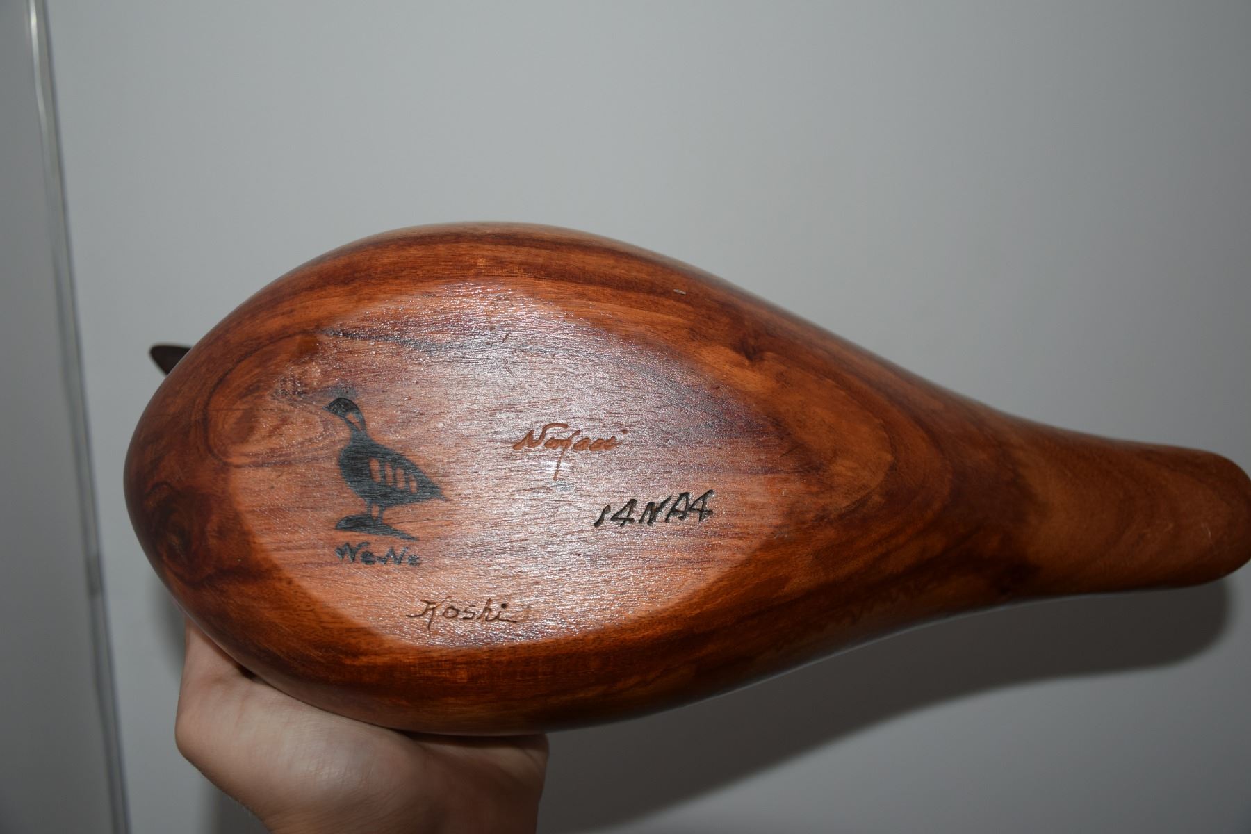 HAND CARVED HAWAIIAN DUCK; SIGNED AND HAND CARVED  NENE W/3 EGGS BY RITA HOLDEN (5 PCS)