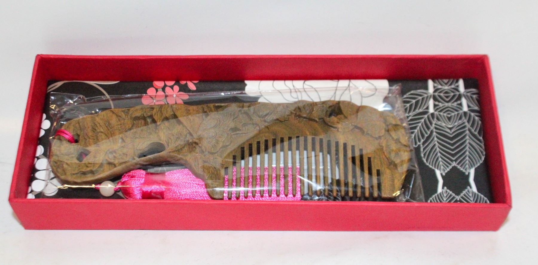 HAND CARVED IN BOX CHINESE WOODEN HAIR COMB