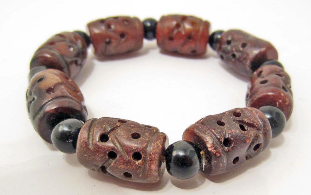 Measures approx 8" in total length, each bead is approx 5/8" long & 1/2" in diameter.