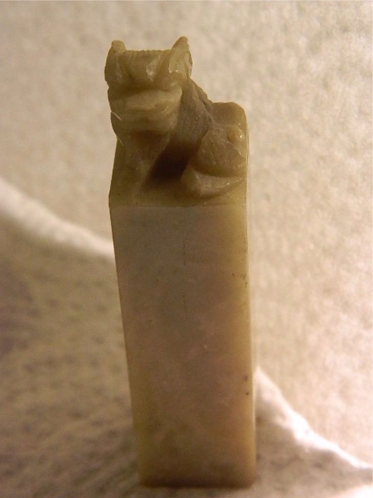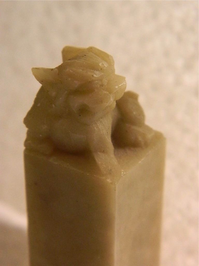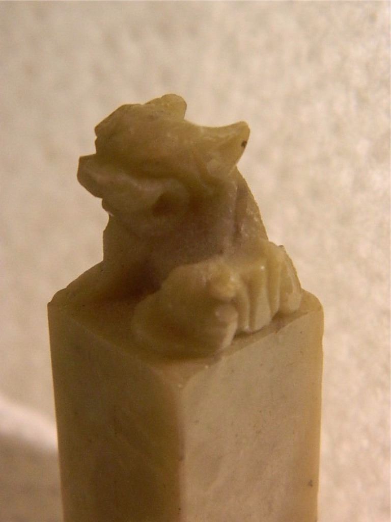 HAND CARVED MARBLE PEDESTAL - ORIENTAL FOODOG ON TOP - 2 3/4" TALL - CREAM MARBLE