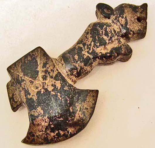 HAND CARVED OLD JADE BEAST AXE FIGURE