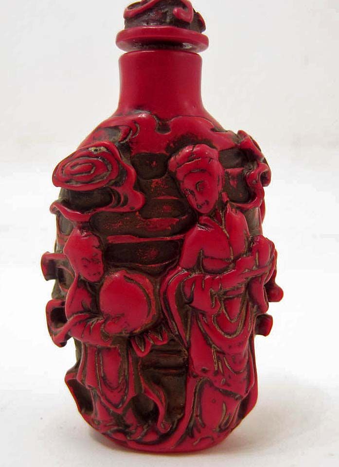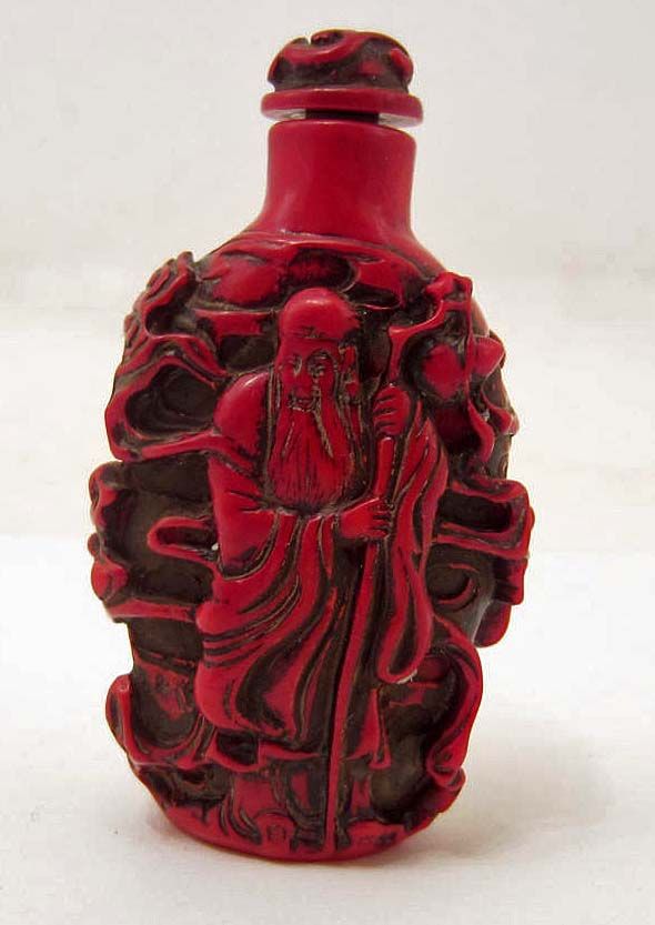 HAND CARVED RED CORAL COLOR CHINESE SNUFF BOTTLE
