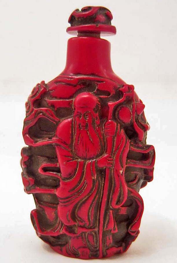 HAND CARVED RED CORAL COLOR CHINESE SNUFF BOTTLE