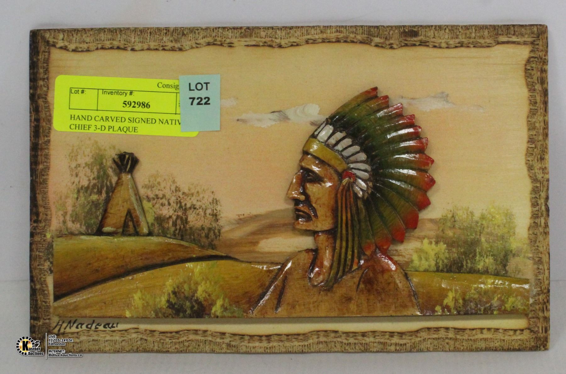 HAND CARVED SIGNED NATIVE CHIEF 3-D PLAQUE