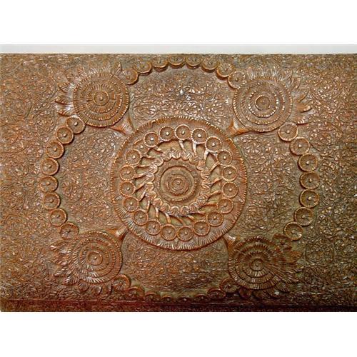 A NICE CARVED TEAK BOX FROM SRINAGAR,KASHMIR,INDIA 1942. THE TOP IS CARVED AS A STYLIZED WHEEL OF LIFE, THEN THE BOX IS TOTALLY CARVED WITH A CONTINOUS TRAILING VINE. ALL OF THIS FROM A SINGLE PEICE OF WOOD.THE BOX IS FROM WHERE THE EARTHQUAKE WAS