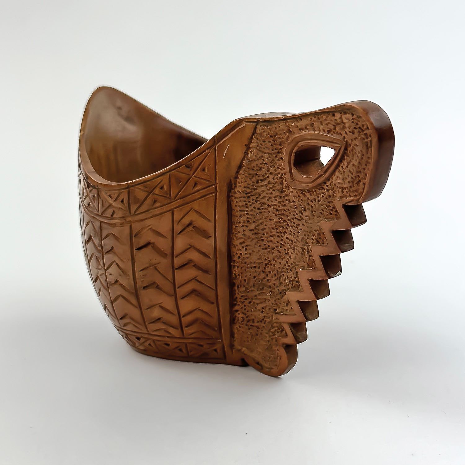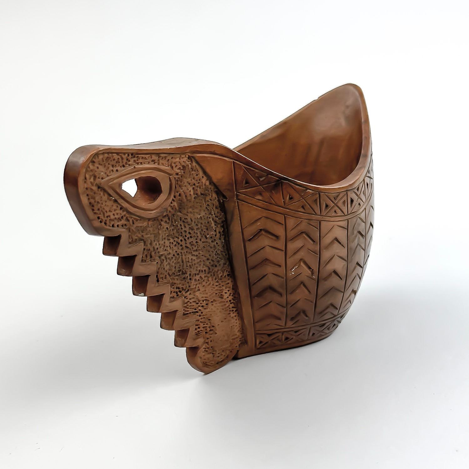 #8291 - HAND CRAFTED YUGOSLAVIAN FOLK ART WOOD CARVING - WEDDING CUP / SHEPHERDS CUP. MEASURES: 5.75” (14.5 CM) LONG BY 3.5”(8.5 CM) HIGH BY 2.5” (6 CM) WIDE***ITEM(S) LOCATED IN LETHBRIDGE ALBERTA. FREE TRANSPORT TO EDMONTON OFFICE AVAILABLE FOR THIS AUCTION. WORLDWIDE SHIPPING IS AVAILABLE FOR ALL ITEMS