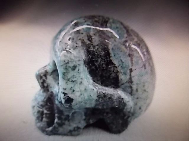 HAND CARVED ZEBRA JASPER GEMSTONE - 288CT - SKULL DESIGN