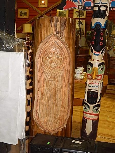 HAND CHAIN SAW CARVED WOOD LOG TREE SPIRIT -OLD GROWTH LOG - OVER 200 YEARS OLD - NATURAL STAIN