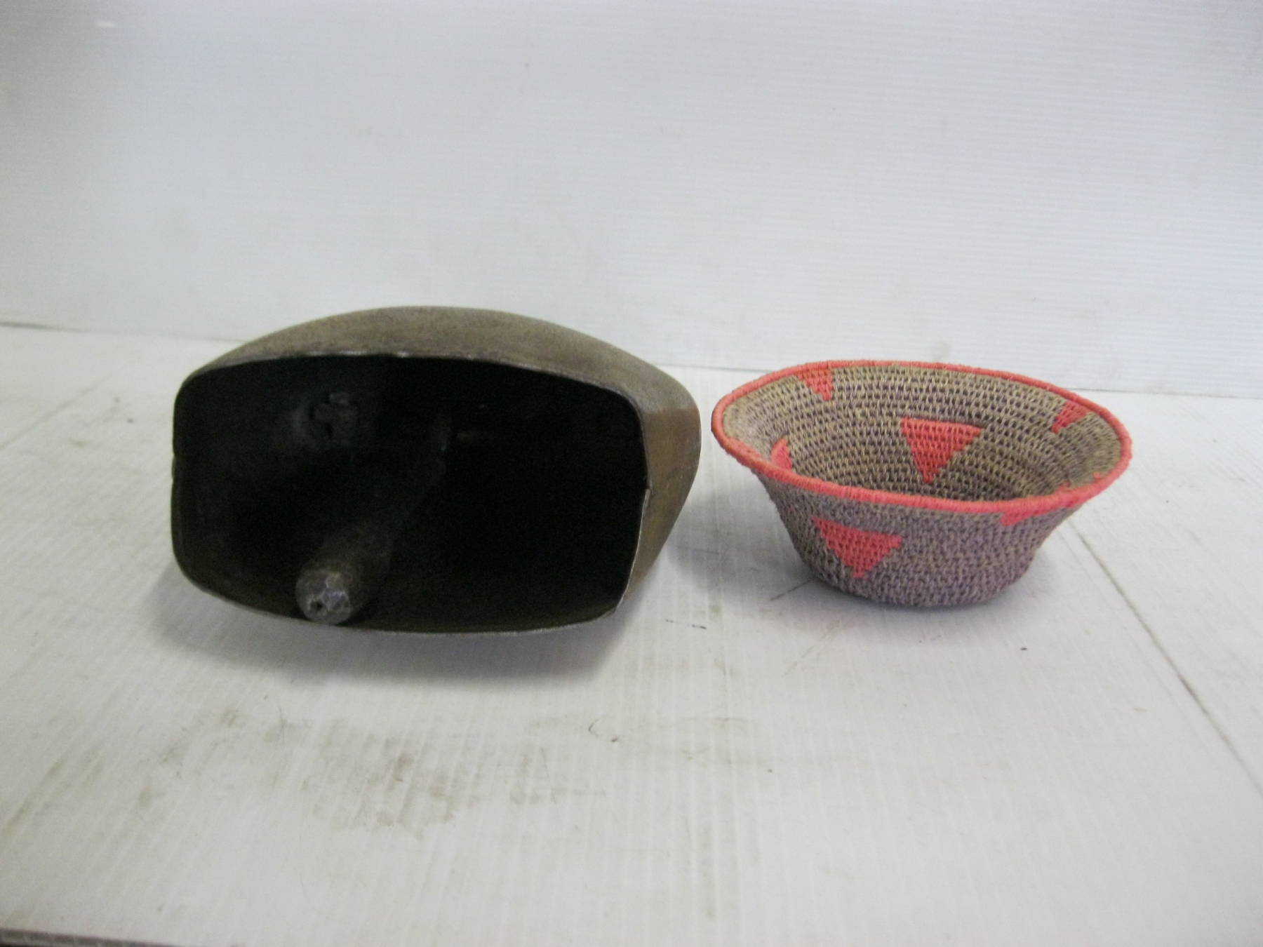 HAND COW BELL & DECORATIVE WOVEN BASKET