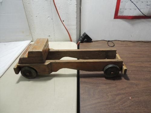 HAND CRAFT WOOD TRUCK & HARD RUBBER WHEEL TRUCK. 21"L. AS SHOWN. VIEW PICTURE FOR DETAIL.