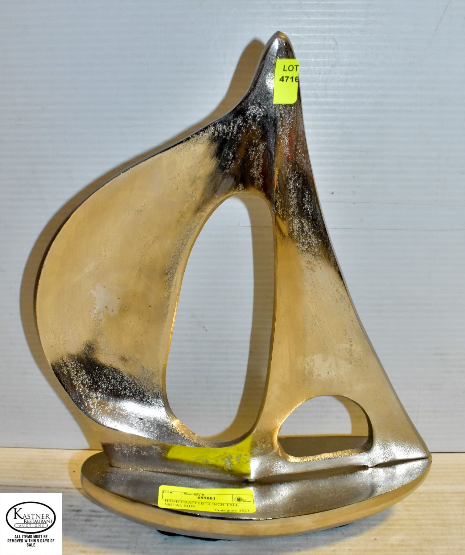 HAND CRAFTED 14 INCH TALL METAL SHIP
